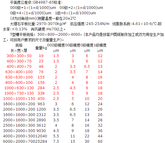 大理石T型槽平板精度:按國家標準計量檢定規程執行,分別為0、一、二、三四個等級。